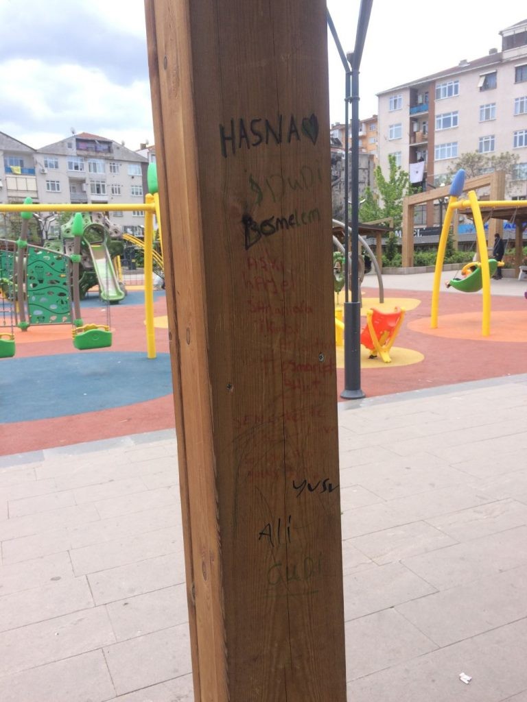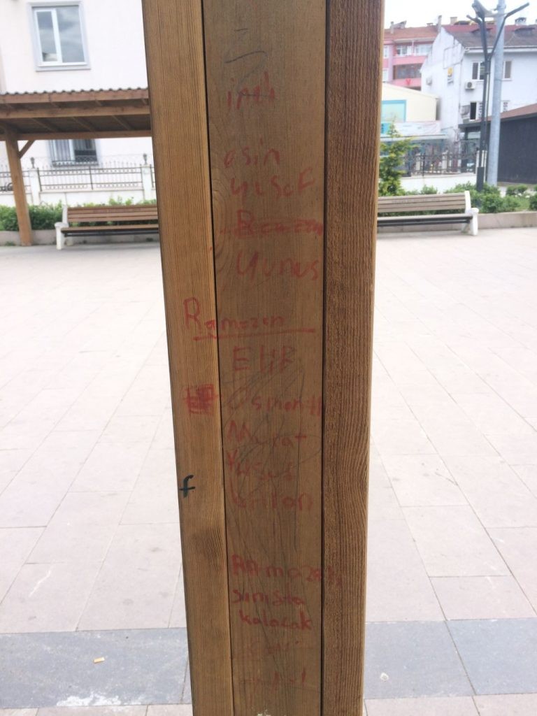İlçemizde Anıtpark’tan sonra en çok tercih edilen Cumhuriyet Parkı’nda bulunan kamelyalara kimliği belirsiz kişiler tarafından yazılar yazılması ile birlikte bu yazılar vatandaşlar tarafından tepki topluyor.