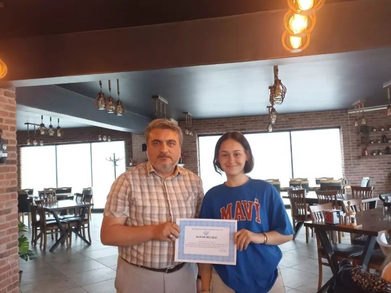 Değirmendere Dörtyol Camii Kız Kur’an Kursu, Kur’an okumaya geçen öğrenciler için belge takımı ve Yaz Kur’an Kursu kapanış programı düzenledi.