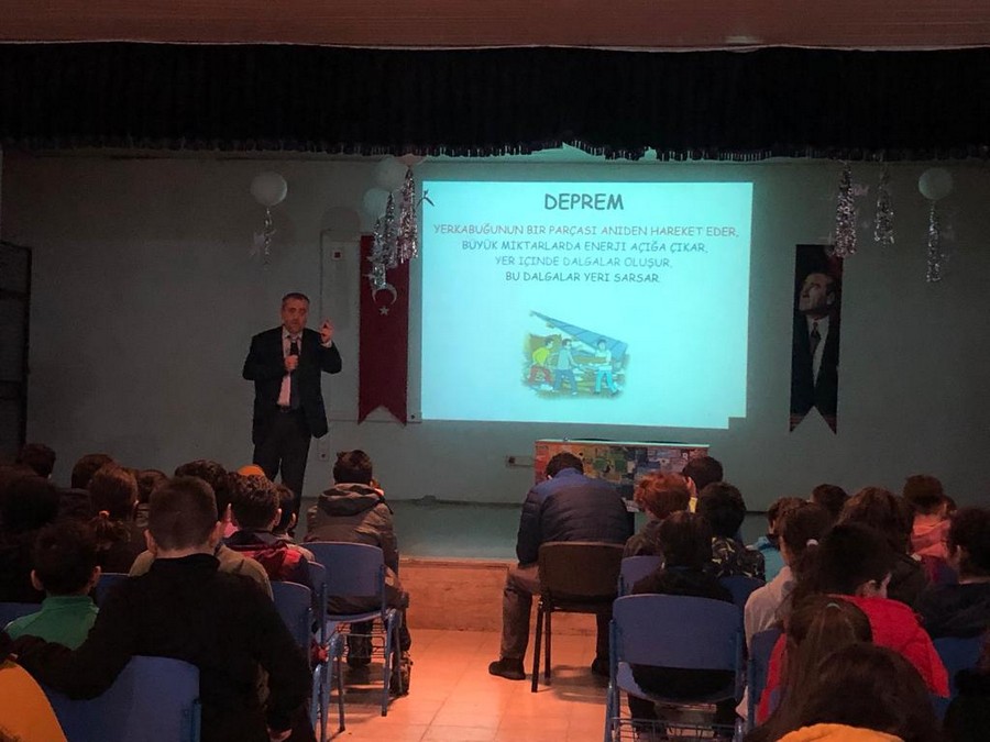 Ülkemizde 17 Ağustos 1999 Gölcük depremi ve aynı yıl meydana gelen Düzce depreminde büyük kayıplar vermiştik. Son olarak 6 Şubat’ta Kahramanmaraş merkezli meydana gelen 2 büyük deprem, ülkemizin bir deprem ülkesi olduğunu bir kez daha akıllara getirdi. Yaşanan bu büyük felaketlerin ardından deprem bilincinin oluşturulması için verilen seminerlerin bir yenisi de geçtiğimiz gün Değirmendere Uğur Mumcu Ortaokulunda gerçekleşti. Kocaeli Üniversitesi Jeofizik Mühendisliği Öğretim Üyesi Prof. Dr. Bülent Oruç tarafından Değirmendere Uğur Mumcu Ortaokulu Çok Amaçlı Salonu’nda 5., 6. ve 7. Sınıf öğrencilerine, öğretmenlere ve okul yönetimine “Deprem ve Afet Farkındalık Eğitimi” Semineri verildi.
