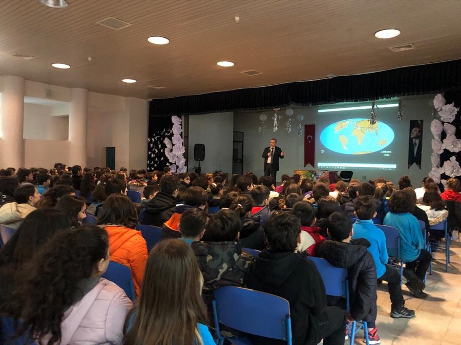 Kocaeli Üniversitesi Jeofizik Mühendisliği Öğretim Üyesi Prof. Dr. Bülent Oruç tarafından Değirmendere Uğur Mumcu Ortaokulunda, Sivil Savunma Kulübü’nün düzenlediği “Deprem ve Afet Farkındalık Eğitimi” semineri iki oturumda gerçekleşti. Seminerde Prof. Dr. Bülent Oruç, ilk olarak depremin ne olduğunu ve nasıl meydana geldiğini anlattı. Olası bir depremde nasıl hareket edilmesi gerektiğini anlatan Oruç, deprem anında ne yapılması gerektiğini ve yaşam üçgeninin öneminin altını çizdi. Öğrencilerin, öğretmenlerin ve okul yönetimin büyük bir dikkatle dinlediği seminerin sonunda Kocaeli Üniversitesi Jeofizik Mühendisliği Öğretim Üyesi Prof. Dr. Bülent Oruç’a vermiş olduğu seminerden ötürü teşekkür ederek çiçek takdim edildi.