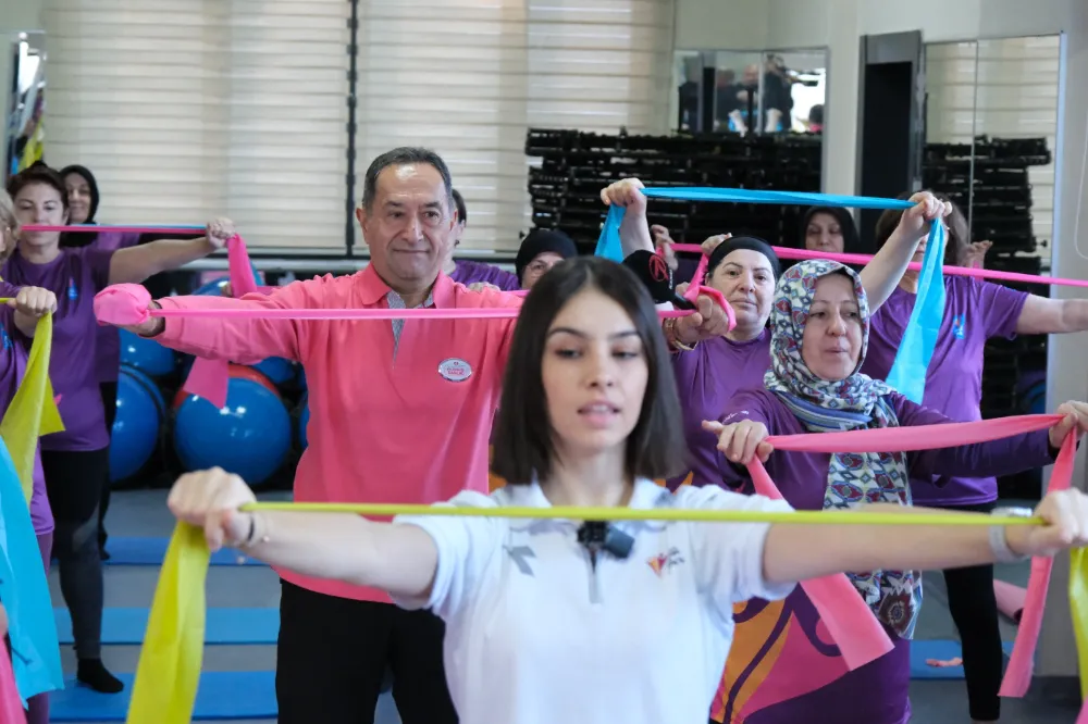 Dr. Feridun Kunak, Akasya Anne Şehir Merkezi’nde program üyeleriyle bir araya geldi. Kadınların egzersiz seansına katılan Kunak, antrenör eşliğinde gerçekleştirilen egzersizlere dahil oldu ve egzersizlerin sağlık üzerindeki olumlu etkilerini anlattı. Kunak ayrıca, fizyoterapist ile birlikte üyelerin sağlık durumlarını değerlendirerek birebir destek sağladı.