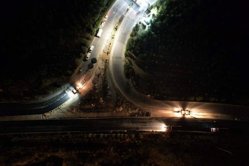 3 FİNİŞERLE ASFALT GECE SERİLDİ