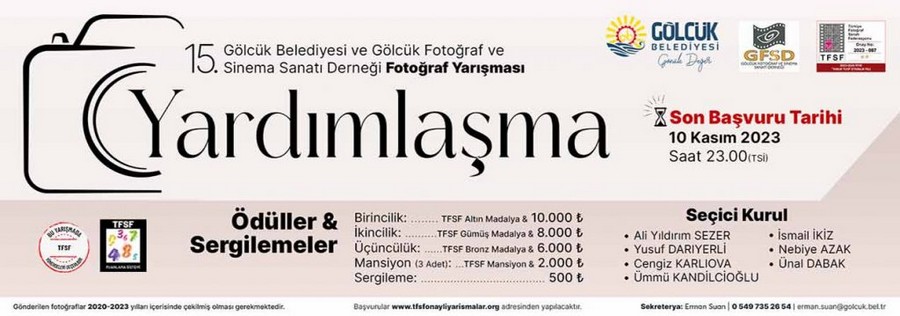 Gerçekleştirecekleri fotoğraf yarışmaları konusunda bilgi veren GFSD Başkanı İsmail İkiz, “Bu yıl 15’incisini düzenleyeceğimiz “Sizin Gözünüzden Gölcük Fotoğraf Yarışması” ile amacımız Gölcük ilçe sınırları içinde yer alan, keşfedilmeyi bekleyen, turistik alanların, çekim merkezlerinin ilçenin simgeleri haline gelenmekanların ve Gölcük’teki yaşamı fotoğraf sanatının kalıcı gücü ile gelecek nesillere aktarmaktır” dedi.