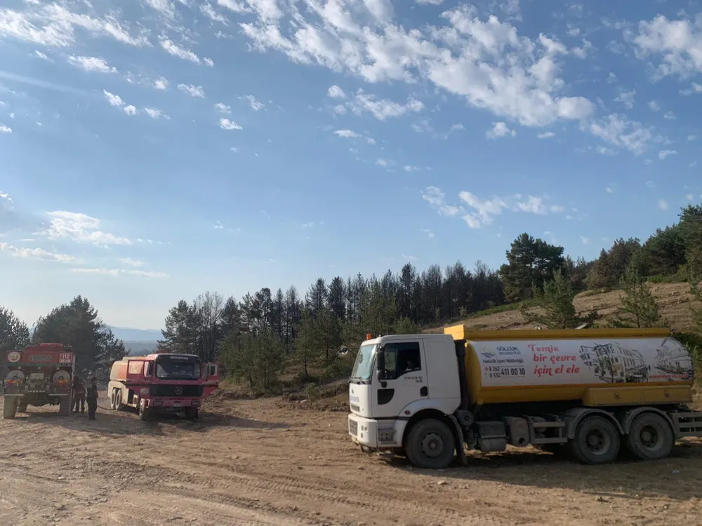 Gölcük Belediyesi’ne ait su tankerleri, Kızılcahamam’da başlayarak Bolu Gerede ilçesine sıçrayan yangınla mücadeleye destek vermek adına bölgede çalışmalarını sürdürüyor.