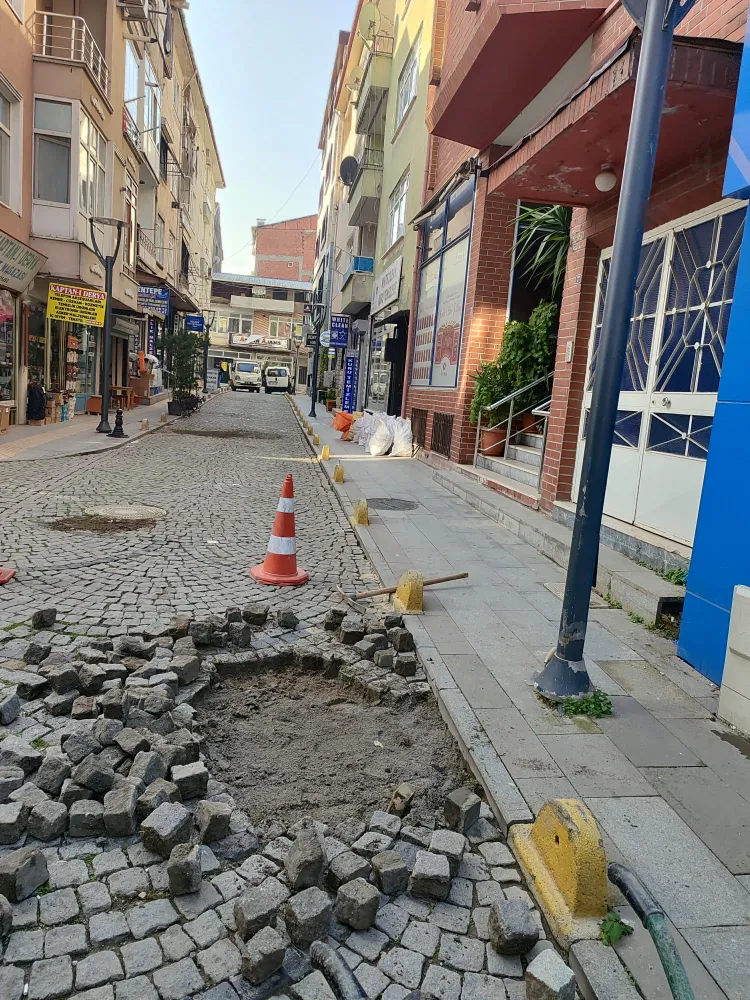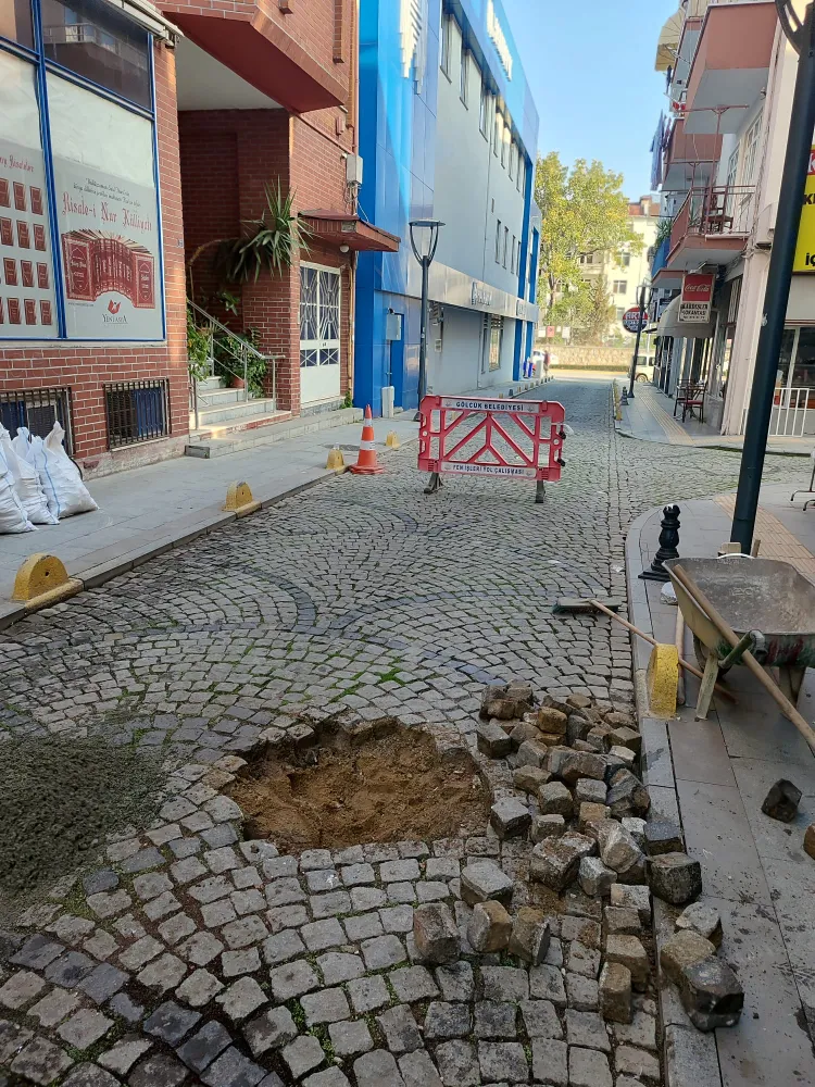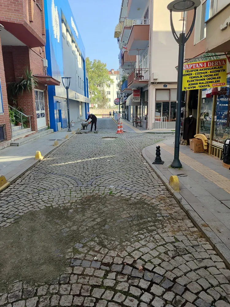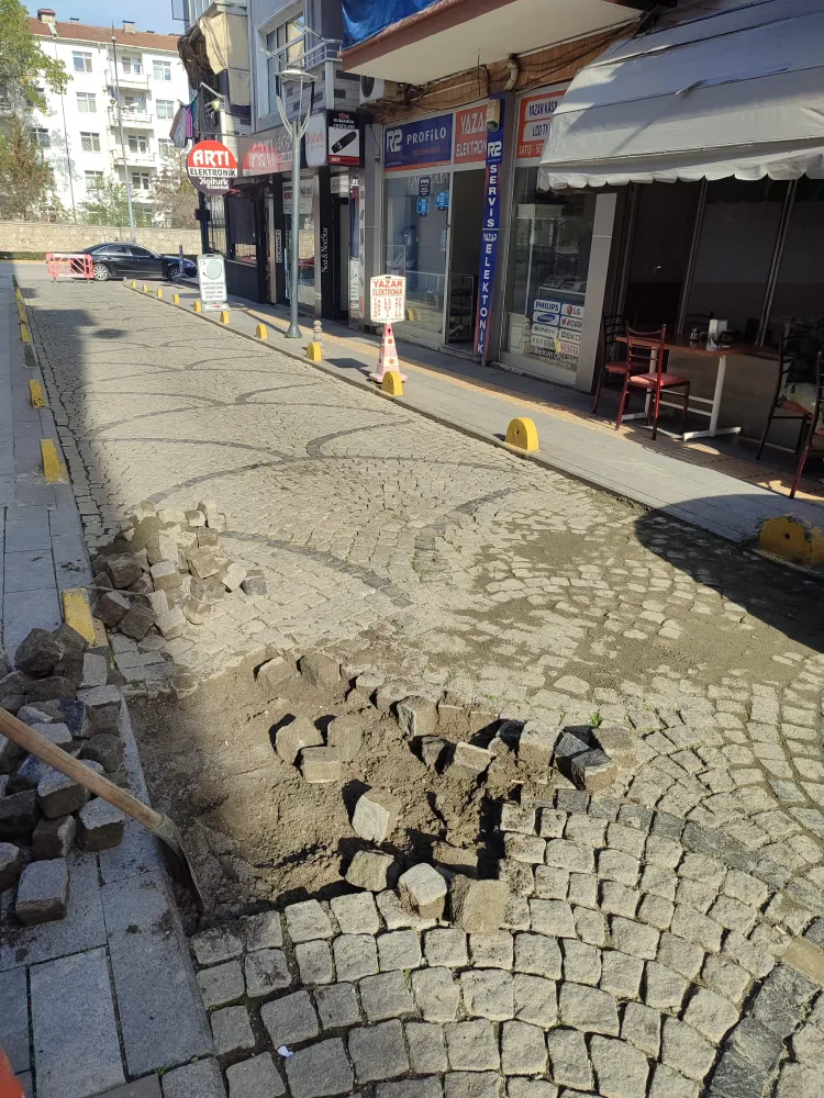 Zamanla zeminde meydana gelen çöküntü nedeniyle bozulan yol yüzeyinde çalışma başlatan ekipler, küptaşları sökerek alanda detaylı zemin düzeltme işlemi yaptı. Zemin düzenlemesinin tamamlanmasının ardından, sökülen küptaşlar yeniden özenle yerlerine döşendi. Yapılan bu çalışmayla hem yolun dayanıklılığı artırıldı hem de sürücü ve yayalar için daha konforlu bir ulaşım sağlandı.