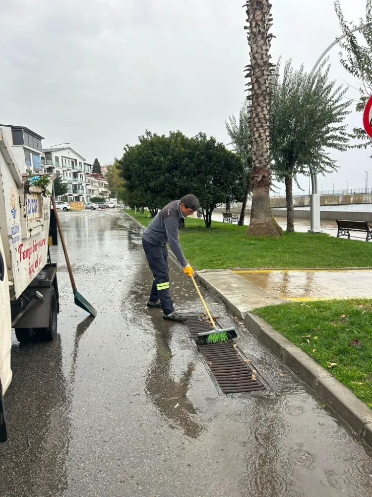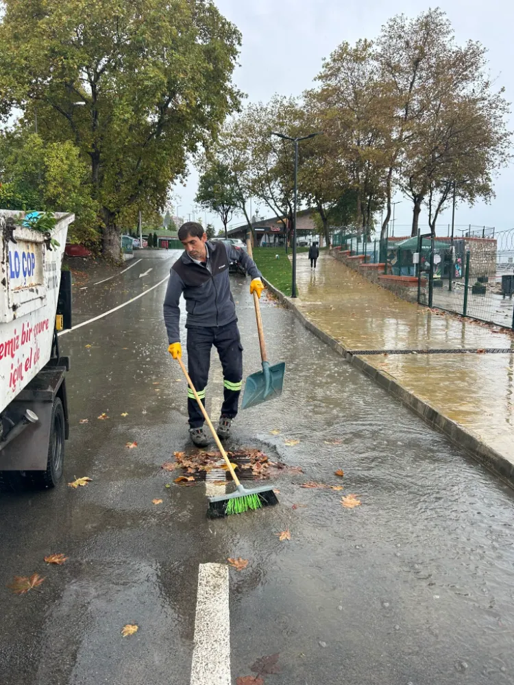 İlçe genelinde yapılan çalışmalarda yağmur suyu mazgallarının üzerini kapatan yaprak, çöp ve diğer atıklar ekipler tarafından titizlikle temizlenerek su birikintilerinin önüne geçildi.