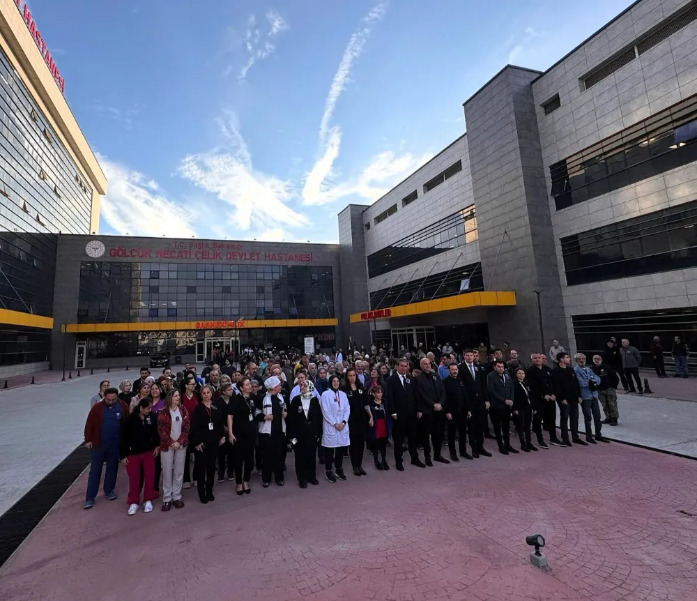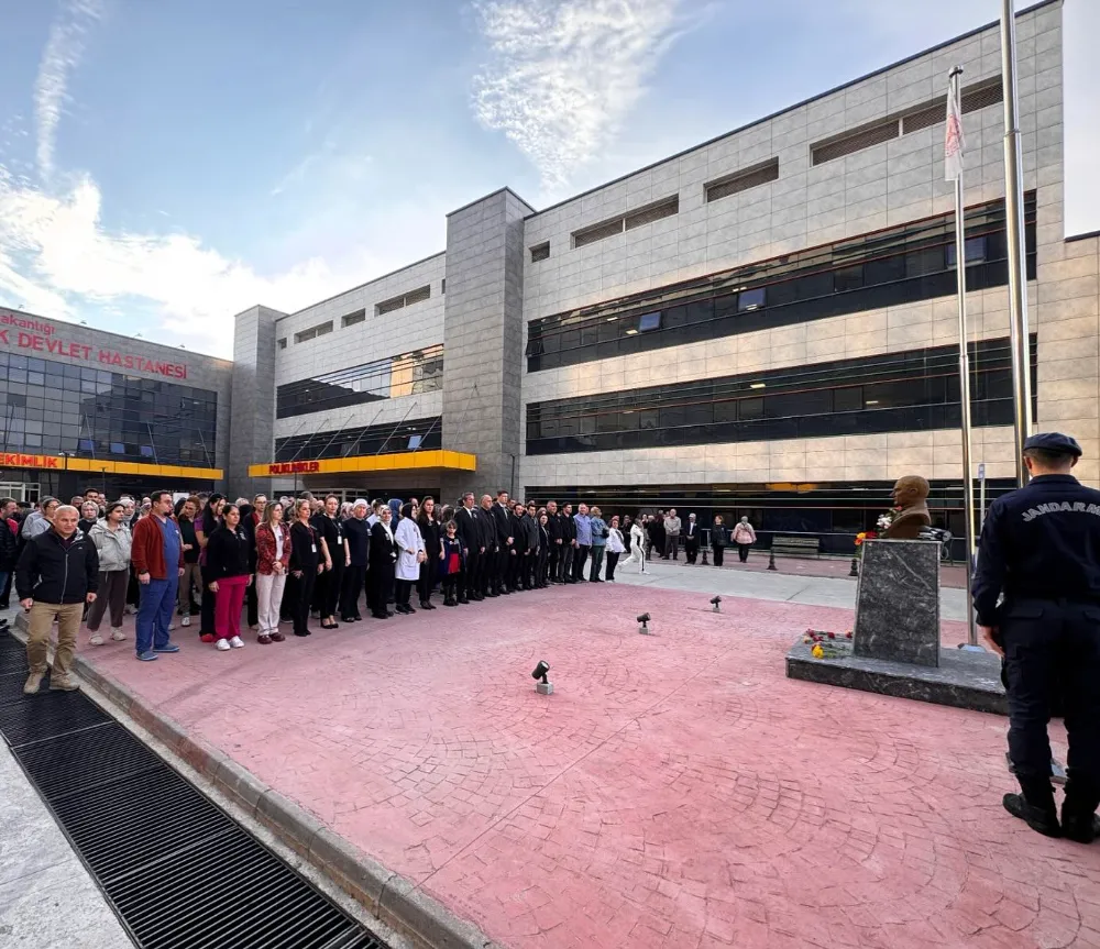 Hastane Başhekimlik girişinde düzenlenen törene, Başhekim Op. Dr. Aziz Çardak, hastane idaresi, çalışanlar, hastalar ve hasta yakınları katıldı. Saat 09.05’te saygı duruşu ve ardından İstiklal Marşı’nın okunmasıyla başlayan törende, Atatürk ve silah arkadaşları minnet ve saygıyla anıldı.