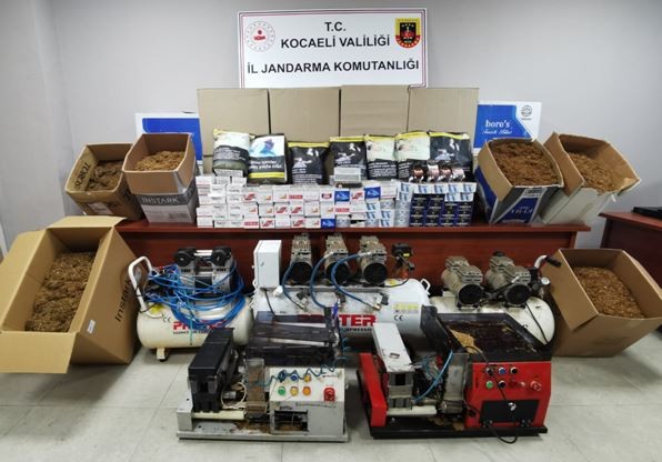 Yapılan açıklamada, ‘Kocaeli İl Jandarma Komutanlığınca; Kaçakçılık suçlarının önlenmesi kapsamında, 07.06.2023 tarihinde, Gölcük ilçesinde icra edilen operasyon neticesinde, bir şahsın iş yerinde, aracında ve ikametinde yapılan aramada, (143.000) adet boş makaron, (31.000) adet tütün doldurulmuş makaron, (60) kg bandrolsüz tütün, (2) adet elektrikli sigara sarma makinesi, (3) adet hava kompresörü, (275) adet boş sigara kutusu, (75) adet bandrol ve (41) adet puro ele geçirilmiş olup, olay ile ilgili şüpheliler hakkında adli tahkikata başlanılmıştır. Suç ve suçlu ile mücadelemiz aralıksız ve kararlılıkla devam ediyor. Kamuoyunun bilgisine saygıyla duyurulur’ denildi.