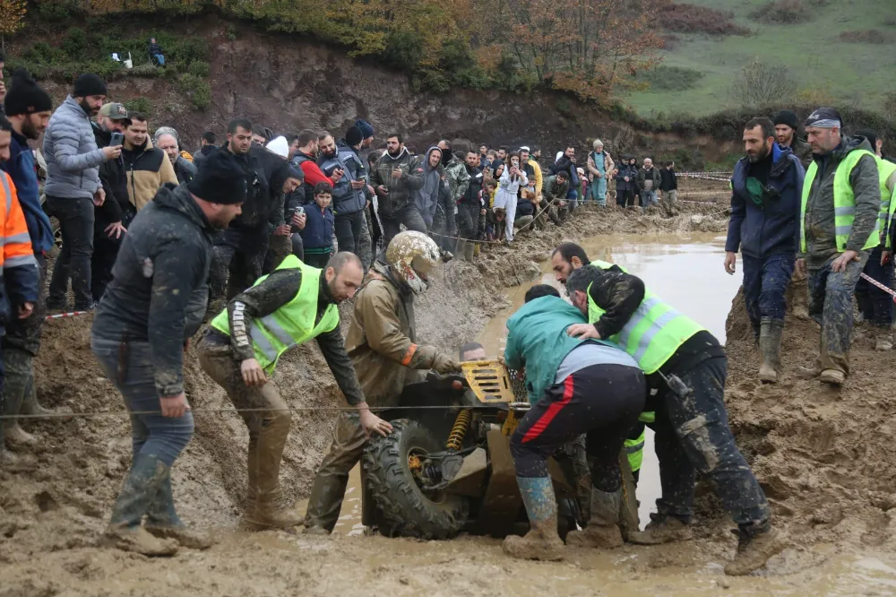 Çamur ve su dolu engebeli parkurda kıyasıya yarışan ATV tutkunları, zaman zaman zorluklar yaşadılar. Parkurda ilerlemekte zorlanan sürücülere ise görevli araçlar yardım etti. Yarışları güvenlik şeridinin ardından takip eden seyirciler ise heyecan dolu anları kaydederken, parkurda yarışan ATV’lerden sıçrayan çamurlardan nasibini aldılar.