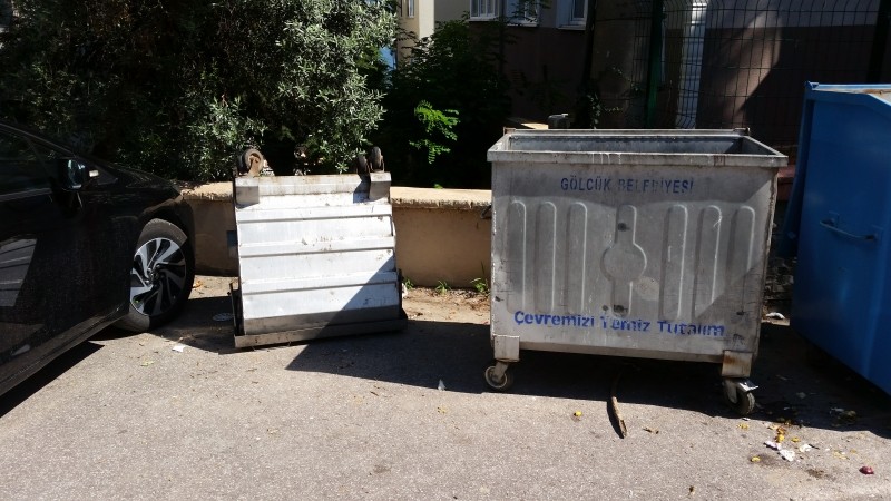 Ters çevrilen çöp konteynırının ne olacağı belli değil