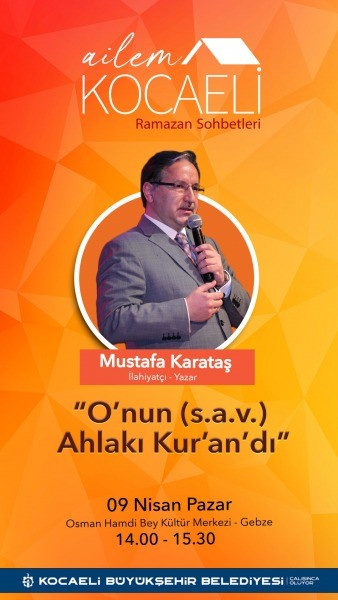 Kocaeli Büyükşehir Belediyesi, Ailem Kocaeli Buluşmaları adı altında başlattığı Söyleşiler de İlahiyatçı-Yazar Mustafa Karataş’ı konuk ediyor. Ramazan sohbetleri çerçevesinde Karataş’ın konuk olacağı sohbet 9 Nisan Pazar günü saat 14.00’te Gebze’de yer alan Osman Hamdi Bey Kültür Merkezinde gerçekleşecek.