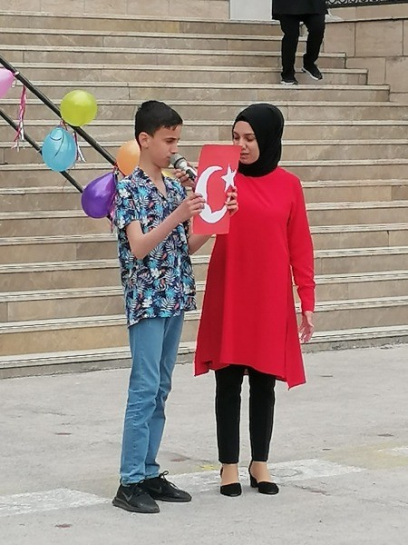 Sözlerine devam eden Müdür Mert, “Değerli yönetim ve öğretmen arkadaşlarım ülkemizin milletimizin dünyanın ve insanlığın geleceği ve barışa katkısı anlamında çok büyük bir önem taşıyan 23 Nisan Ulusal Egemenlik ve Çocuk Bayramını kutlarken, geleceğimizin teminatı olan sevgili yavrularımızın en donanımda şekilde yetiştirilmesi için daha fazla çalışmamız gerektiğinde bilincindeyiz. Bu itibarla geleceğimizin en büyük teminatı olan çocuklarımızı ve gençlerimizi bilgili, toplumun ihtiyaçlarına cevap verebilecek girişken küresel düşünüp yerel hareket edebilen tarzda yetiştirebilme sorumluluğumuz sizlerin üzerindedir. Yapmakta olduğunuz bu kutsal görev bunun için her takdirin üzerindedir. Sevgili çocuklar sevgili gençler sizin şahsınız da dünya çocuklarının da bayramını kutluyor, bütün çocuklara sevgi ve mutluluk dolu bir dünya temenni ediyorum. İstiklal Harbimizin Başkomutanı, Türkiye Büyük Millet Meclisi’nin ilk başkanı ve Cumhuriyetimizin kurucusu Gazi Mustafa Kemal Atatürk ve tüm şehit ve gazilerimizi rahmet minnetle yad ediyorum ve bugün anlamlandıran çocuklarımızın milletimizin ve tüm dünya çocuklarının Ulusal Egemenlik ve Çocuk Bayramını en içten dileklerimle kutluyor, hepinizi saygıyla sevgiyle selamlıyorum” dedi.