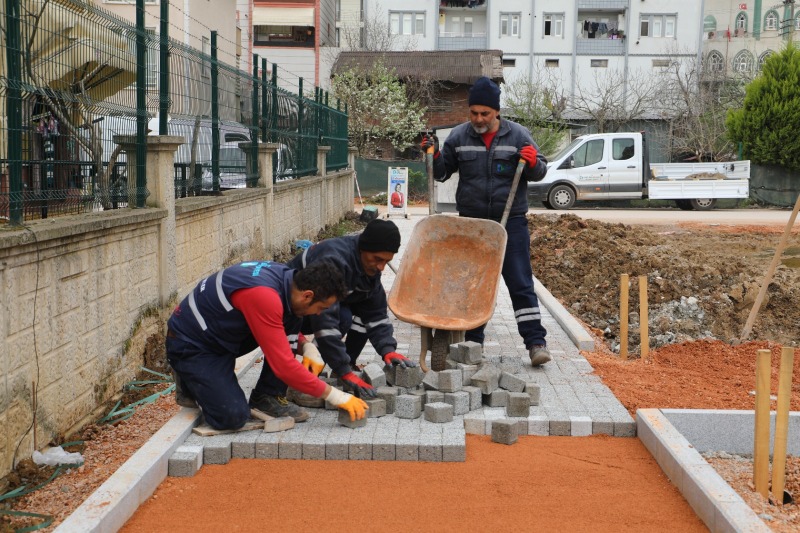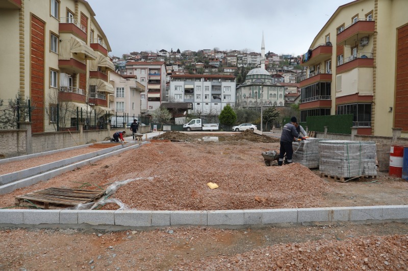 İzmit Belediyesi Park ve Bahçeler Müdürlüğü, Yenişehir Mahallesi Muhsin Yazıcıoğlu Caddesi ile Güneyli Sokak arasında park yapım çalışmalarına devam ediyor
