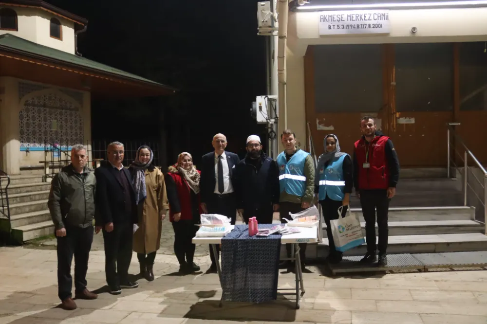 İzmit Belediyesi, Ramazan ayı maneviyatını yaşatmaya devam ediyor. Teravih namazı çıkışı cemaat ile buluşan İzmit Belediyesi yetkililerinin sıradaki durağı Akmeşe Merkez Cami oldu. Programda Meclis Üyesi Turgut Kocacık, İnanç Masası Sorumlusu İsmet Kanık, Halkla İlişkiler Müdürü Gülşah Çubuklu, cemaat ile buluşup kendilerine tespih, takke ve lokum ikram etti. Bu ziyaretten memnun olan cami cemaati, Başkan Hürriyet ve ekiplere teşekkür etti.
