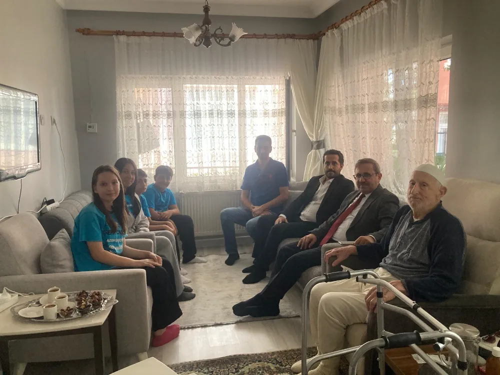 Ziyaretin devamında, Okul Müdürü Abdullah Doğan, öğretmenlerden Bahadır Özdemir ve bir grup öğrenci, Kore Gazisi Mustafa San’ı evinde ziyaret etti. Samimi bir ortamda gerçekleşen görüşmede, öğrenciler gazimize çiçek takdim ederek ellerini öptü; geçmişte verdiği mücadeleye duydukları minneti dile getirdiler.