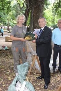 Kaymakam Altıntaş ve Başkan Ellibeş yapımı süren bir heykelde balığın pullarının yapılmasına katkı sundular. Sonrasında Gölcük Fotoğraf ve Sinema Sanatı Derneği tarafından çekilen fotoğraflar sanatçılara hediye edildi.
