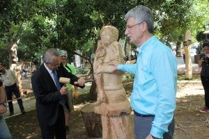 Sanatçılarla bir süre sohbet eden Başkan Ellibeş akabinde açıklamalarda bulundu, ‘Ahşap Heykel Sempozyumu’nun yıllardır başarı ile devam eden bir proje olduğunu ve bu yıl da aynı başarının devam ettiğini belirten Ellibeş,” Sanatçılarımız bildiğimiz kütük şeklindeki ağaçları aldılar ve işlemlere başladılar. İşi Mutfağında görüp ziyaret etmek istedik. Geldiğimizde gördük ki kütük halindeki ağaçlarımız şekillenmiş, daha finale var ama şekiller ortaya çıkmış. Kendilerini tebrik ediyorum.