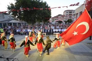 15 Temmuz Şehitler ve Demokrasi Meydanı’na kadar devam eden kortej sonrasında ilk olarak 5 ülkeden 200 konuk öğrenci sahne aldı; yörelerine ait halk oyunlarını sergiledi. Sırbistan’dan-Azerbaycan’a, Bosna Hersek’ten Makedonya’ya kadar farklı yörelere ait gösteriler, büyük beğeni ile izlendi. Finalde ise Körfez Belediyesi Halk Oyunları ekibi vardı. Ekip, oyunları ile alandakileri bir Artvin’e bir İzmir’e götürdü. Finaldeki Zeybek oyunu, büyük alkış aldı.