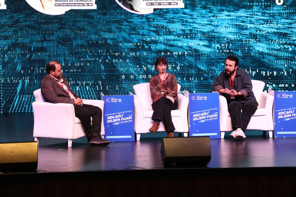 Büyükşehir Belediyesi’nin ev sahipliğinde düzenlenen Kocaeli Bilişim Fuarı’nın en ilgi çekici oturumlarından biri olan “Yapay Zekâ ile Müzik Üretimi ve Prodüksiyon” paneli, gençlerin yoğun ilgisiyle karşılandı. Dijital dönüşümle müziğin kesiştiği noktaları anlatan panelistler, oturumun ardından sahneye çıkarak fuara damga vuran mini performansla izleyiciyi coşturdu.