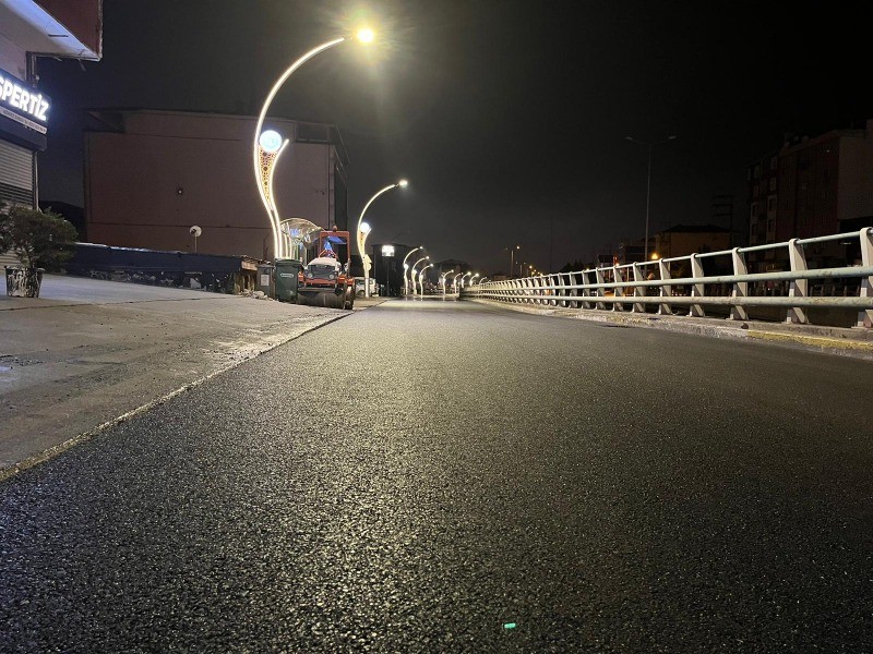 Körfez Eşref Bitlis Caddesi yaya kaldırımları, dekoratif aydınlatma direkleri ve yenilenen asfaltıyla göz dolduruyor