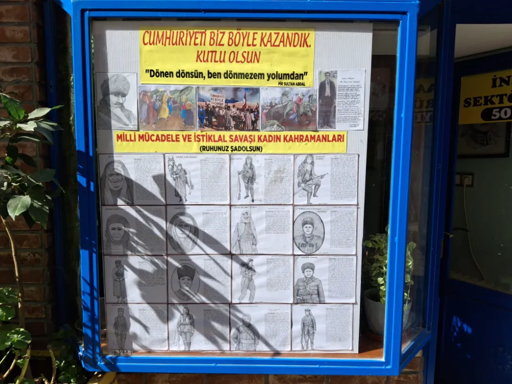 Merkez Mahallesi 13. Sokak’ta yer alan iş yerinin vitrinini milli mücadele ve İstiklal savaşı kadın kahramanlarımızın hayat hikayeleri ile sergileyen Metin Meydanlı yaptığı açıklamada, çalışmasının bir buçuk yıl sürdüğünü belirterek şunları söyledi: “Cumhuriyetimizin 102. Yıl dönümünü kutladığımız şu günlerde milli mücadele ve İstiklal Savaşı kadın kahramanlarımızın resimlerini noktalama tekniği yani puantilizm ile resimlerini yapmak istedim çalışmam tam bir buçuk yıl sürdü. Çalışmalarımı tamamladıktan sonra milli mücadele ve İstiklal Savaşı kadın kahramanlarımızı hayat hikayeleri ile vitrinimde sergileme kararı aldım. Bu çalışmayı yapmamdaki en büyük vesile hayat hikayelerini okudum zaman çok duygulandım. Hatta bazılarının yazılarını okurken ağladığım oldu. O dönemde büyük mücadele vermişler. Resime olan ilgimden dolayı böyle bir çalışma yapmaya karar verdim. İstedim ki ülkemizin nasıl kazanıldığını kimler tarafından kazanıldığın gençler görsünler ve okusunlar. Bu ülke nasıl kurtarılmış, nasıl bugünlere gelmişiz, kimler mücadele etmiş, ne şartlarda mücadele etmiş onların görülmesini istedim” dedi.
