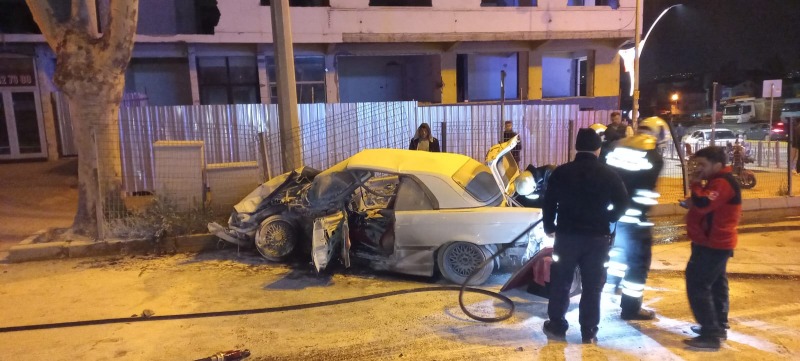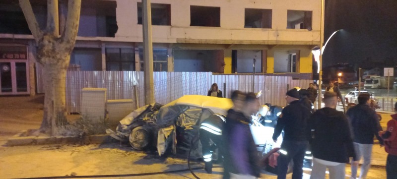 Gölcük Mobil Mevkii’nde gece saat 04.00 sularında meydana gelen kazada bir araç alev aldı. Kazada iki kişi yaralandı.