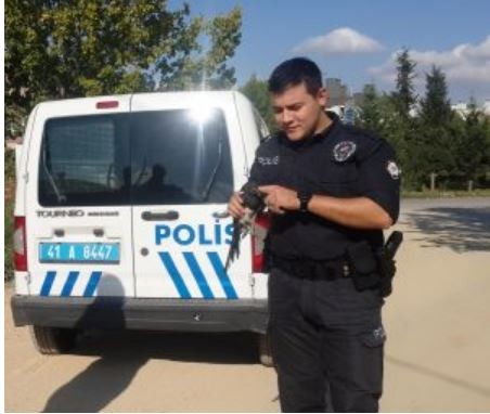 Yavru Kargayı alan polis memurunu gören vatandaşlar “Helal olsun böyle polis memurları da varmış” dediler, vatandaşlar duyarlı polis memuruna teşekkür ederken polis memuru yaralı yavru kargayı bir veterinere teslim etti.
