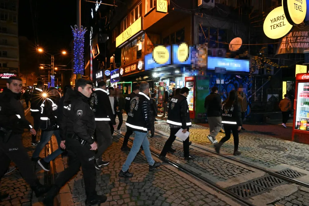 İzmit Kemal Paşa Mahallesi’nde eğlence mekanlarının yoğunlukta olduğu Barlar Sokağı’nda yılbaşı öncesi denetim yağdırdı. Kocaeli Emniyet Müdürlüğüne bağlı 37 ekip ve 10 amirle yapılan denetimlerde 28 işletme kontrol edildi. İşletmelerde müşteri olarak bulunan 428 kişiye GBT kontrolü yapıldı. Ruhsatsız canlı müzik yayını yapan 1 işletme tespit edildi.