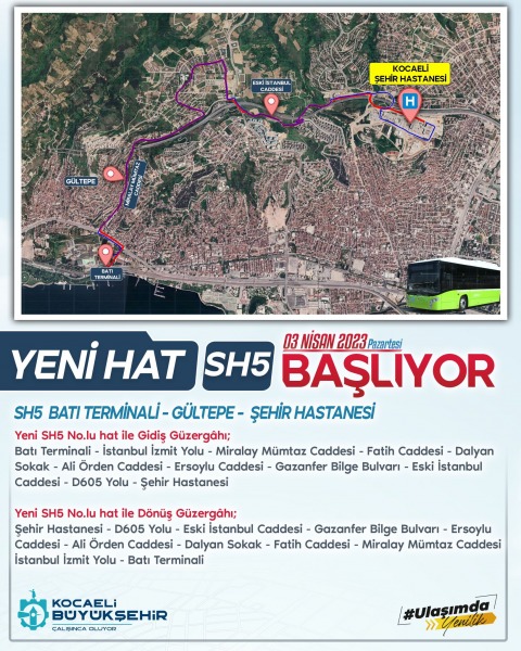 İzmit Gültepe Mah.-Tüysüzler Mahallesindeki vatandaşlarımızın Şehir Hastanesine erişimin sağlanması planlanıyor. Ayrıca Darıca, Çayırova, Gebze, Dilovası, Körfez, Derince ilçelerimizden gelen hatlardaki yolcularımız Orduevi ve Gültepe Sapağından aktarmalı olarak Şehir hastanesine bu hat ile ulaşabilecektir.