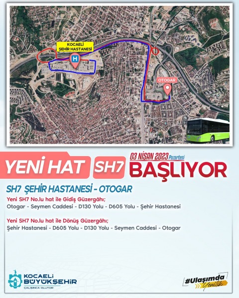 Alikahya – Karadeniz Mah. – Yuvam Akarca bölgeleri ve Körfez, Gebze, Çayırova, Dilovası, Gölcük, Karamürsel, Kartepe ve Kandıra ilçelerinden Otogar bölgesinde inen vatandaşlar ve diğer illerden gelen vatandaşların aktarmalı olarak Şehir Hastanesine erişimi sağlanacak. SH7 hattı Ekspres Ring şeklinde çalışacak.Körfez, Gebze, Çayırova, Dilovası, Gölcük, Karamürsel, Kartepe ve Kandıra İlçelerinden gelen Belediye/Ulaşımpark hatlarındaki ana tarifeleri kullanan yolcular bu hat ile ücretsiz veya tamamlayıcı aktarma ile Şehir hastanesine ulaşabilecek.