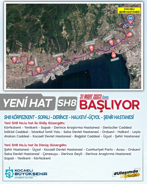 Körfezkent – Yenikent – Sopalı- Derince bölgesindeki vatandaşların Şehir Hastanesi erişimin sağlanması için SH8 hattı kuruldu. Ayrıca Sopalı Araştırma Hastanesi – Seka Devlet Hastanesi – Kocaeli Devlet Hastanesi’nden SH8 hattı ile Şehir Hastanesine direkt ulaşım sağlanacak.