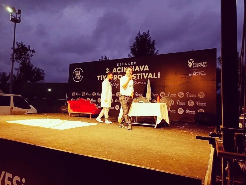 Sırf Tiyatro’dan yapılan açıklamada, ‘Esenler Belediyesi 3. Açıkhava Tiyatro Festivali’nde sahne aldık. Harika bir ortamda harika bir tiyatro akşamı yaşadık. Bizleri ağırlayan ve seyircilerimizle buluşma fırsatı veren Esenler Belediyesi’ne Teşekkürlerimizi sunuyoruz.’
