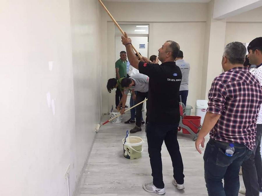 Türk Metal Sendikası Gölcük Şubesi Başkanı Mehmet Şener, “Sendikamız sosyal ve kültürel kulüp üyeleri, örnek bir davranış sergileyerek Gölcük Hamidiye İlköğretim Okulu’na tadilat yaptı. Okulumuzun duvarlarını boyayan üyelerimiz, güzel bir çalışmaya imza atarak okulumuzun bir eksiğini kapatmış oldu. Kendilerine, eğitim anlamında yapmış oldukları bu çalışmadan ötürü teşekkürlerimizi sunuyoruz” dedi.