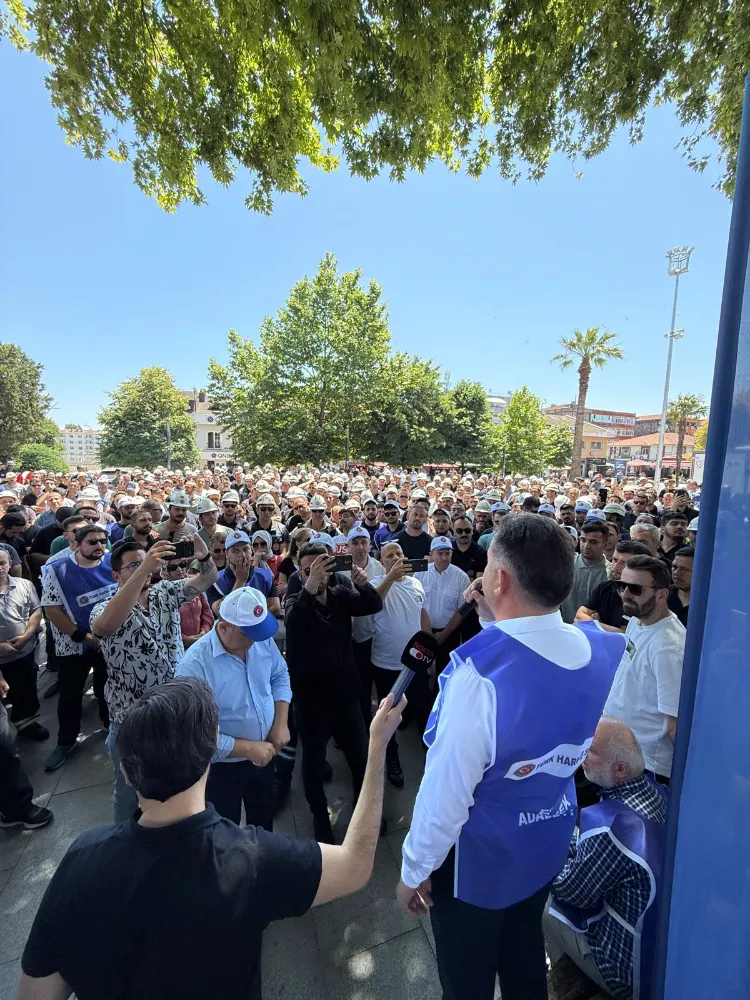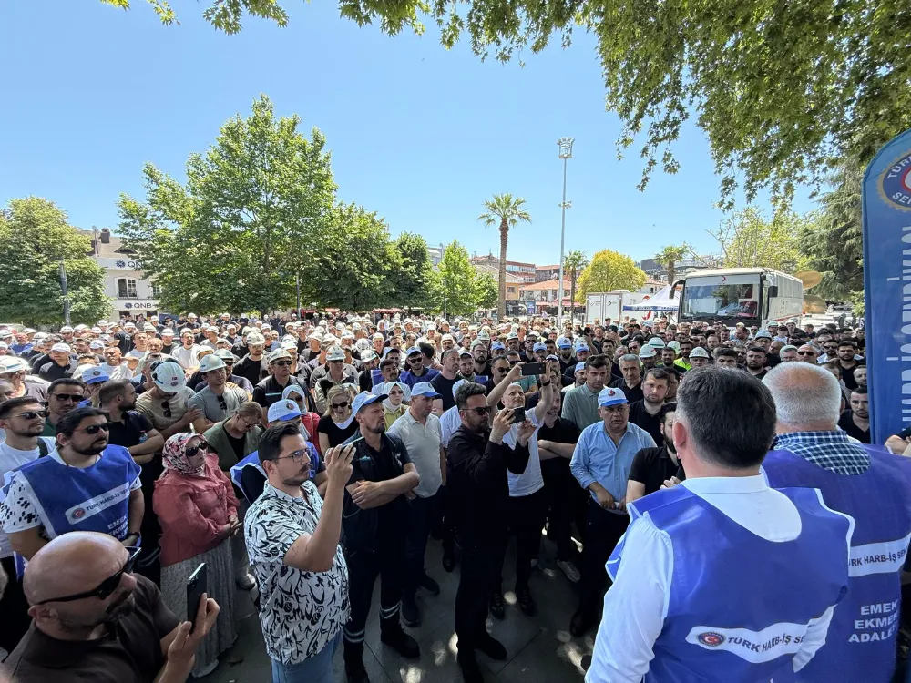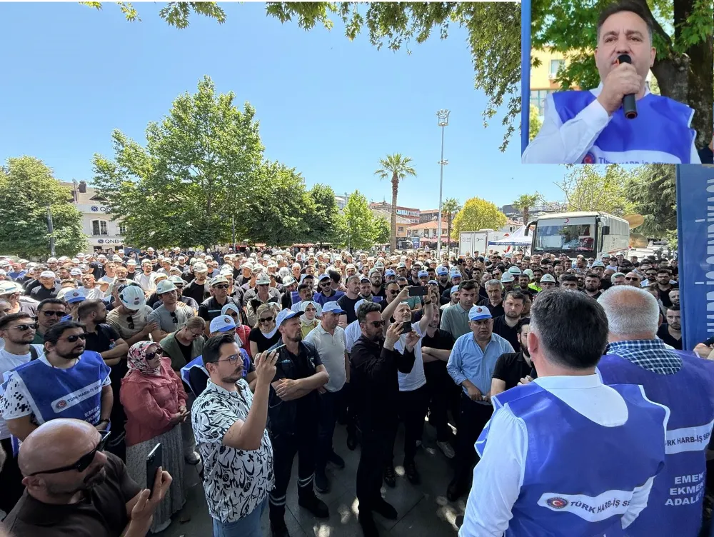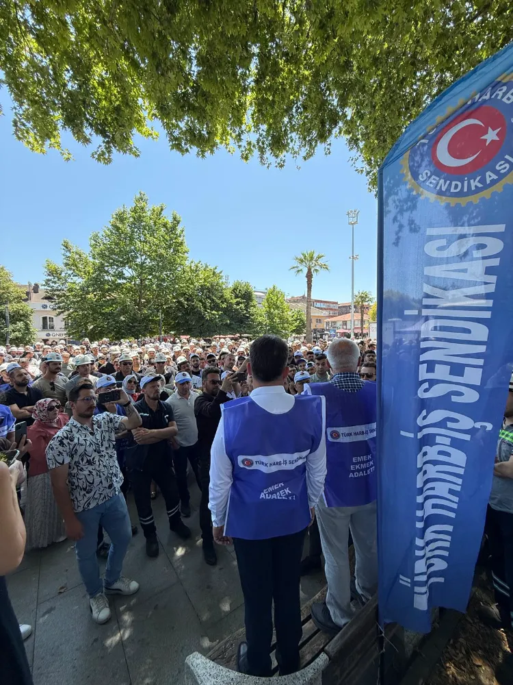 Bu sabah mesai öncesi Anıtpark’ta bir araya gelen binlerce tersane işçisi hükümete seslendi. iktidarın verdiği ilk 6 ay yüzde 16, ikinci 6 ay yüzde 8, yıllık toplam yüzde 24 zam teklifini asla kabul etmeyeceklerini ifade eden Türk Harb İş Sendikası Kocaeli Şubesi Başkanı Şakir Akçer, yaptığı basın açıklamasında, “Kıymetli Emekçi Kardeşlerim, Hepinizi saygıyla sevgiyle selamlıyorum. Bugün burada kamuda çalışan işçiler olarak, 2025-2026 yılını kapsayan Toplu İş Sözleşme sürecimizde, hükümet tarafından sunulan kabul edilemez teklifine karşı, tepkimizi hep birlikte dile getirmek için toplanmış bulunuyoruz. Burada, iş yerlerimizin önünden hükümete açık ve net çağrımızdır: Kamu Toplu iş Sözleşme sürecinde biz işçiler, sosyal diyaloğa dayalı, şeffaf ve çözüm odaklı bir yaklaşım görmek istedik. Ama ne yazık ki siz, işçinin sabrını sınadınız. Üç ay boyunca masaya hiçbir teklif getirmediniz. Uyardık: "Geçim şartları her geçen gün zorlaşıyor" dedik, görmezden geldiniz. Sabırla çözüm bekledik. En sonunda ise zar zor, lütufmuş gibi bir teklif sundunuz. Bu teklifiniz, bırakın kabul etmeyi, emeğimizi yok saymaktır! Bu nedenle, verdiğiniz rakamları burada, dile bile getirmeyeceğiz... Ne siz o teklifi vermiş olun, nede biz duymuş olalım!” dedi.
