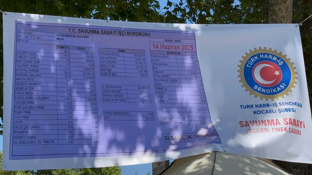 Türk Harb İş Sendikası Kocaeli Şube Başkanı Şakir Akçer, Anıtpark’ta açtıkları dayanışma çadırında binlerce tersane işçisine seslendi. Sözleşme görüşmelerinde iktidardan gelen zam teklifini kabul etmeyeceklerini ifade eden Başkan Akçer, Hükümetin teklifinin Türk İş’in yüzde 50’lik teklifinin yanından bile geçmediğini belirterek, “Bu teklifiniz, bırakın kabul etmeyi, emeğimizi yok saymaktır! Bu nedenle, verdiğiniz rakamları burada, dile bile getirmeyeceğiz... Ne siz o teklifi vermiş olun, nede biz duymuş olalım” dedi.