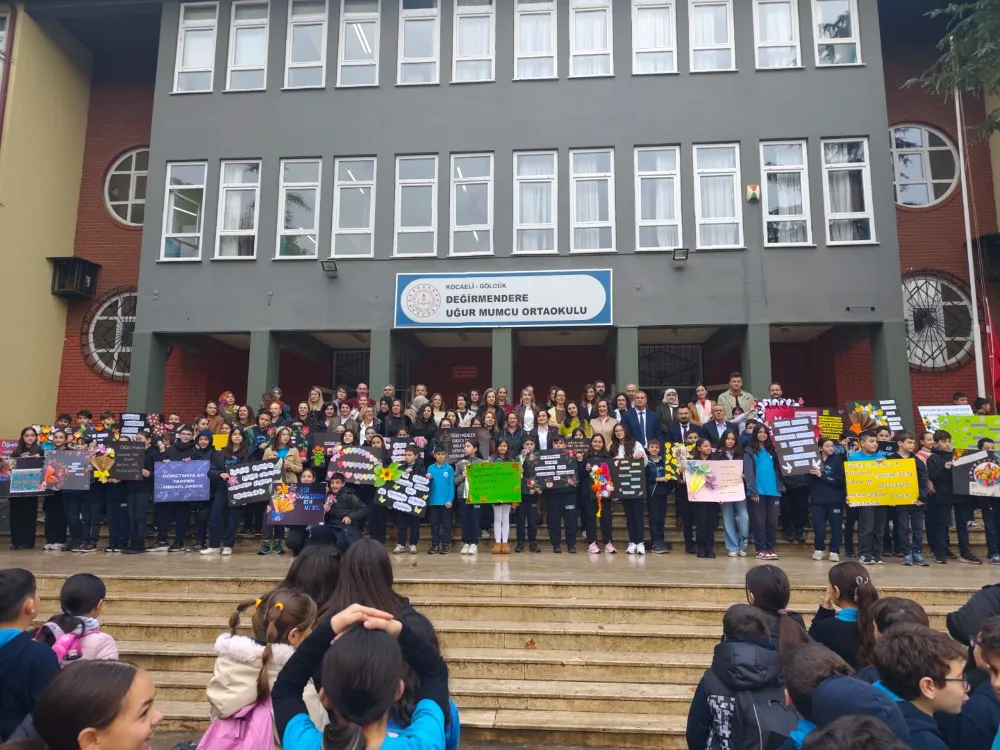 Gölcük’ün Değirmendere Mahallesi’nde eğitim veren Uğur Mumcu Ortaokulu, 24 Kasım Öğretmenler Günü’nü bu yıl da unutulmaz bir etkinlikle kutladı. Başarılarıyla adından sıkça söz ettiren okulun öğrencileri, öğretmenlerini kırmızı halıda alkış koridoru oluşturarak öğretmenlerini yıldız gibi karşıladılar.