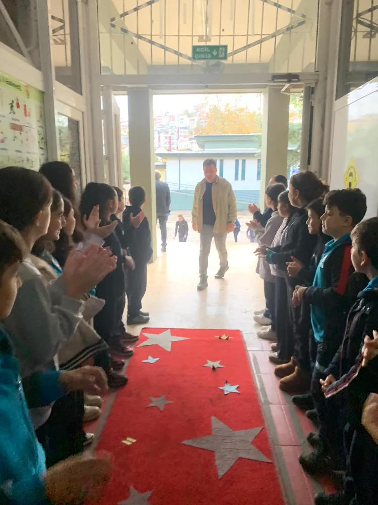 Değirmendere Uğur Mumcu Ortaokulu öğrencileri, 24 Kasım Öğretmenler Günü'nde kırmızı halıda alkış koridoru oluşturarak öğretmenlerini Yıldızlar gibi karşıladı. Okulun girişinde hazırlanan uzun kırmızı halı boyunca iki sıra halinde dizilen öğrenciler, öğretmenler geçerken alkışlarla sevgi ve saygılarını gösterdi. Öğretmenler, öğrencilerin bu sürprizi karşısında duygusal anlar yaşadı.