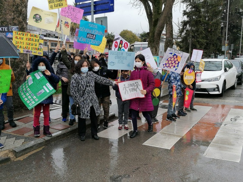 “Yaya Önceliği Kırmızı Çizgimizdir” mottasıyla gerçekleştirilen etkinlikte AKV Mesleki ve Teknik Anadolu Lisesi ve Piri Reis İlkokulu öğrencilerinin hazırlamış oldukları pankartlar dikkat çekerken. Öğrencileri hazırladıkları pankartlar ile yaya yollarında durarak dikkat çektiler.