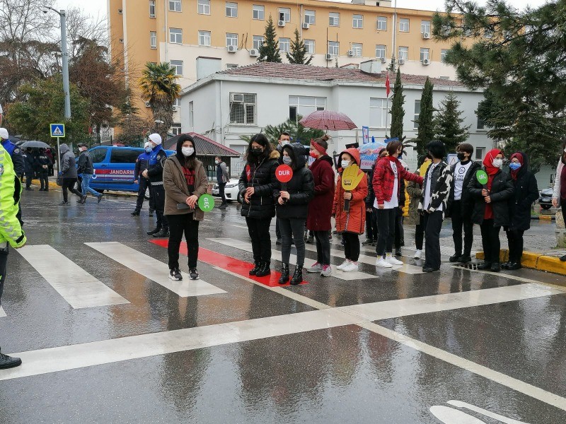 Öncelik hayatın, öncelik yayanın sloganı ile yaya önceliğine dikkat çekmek adına İçişleri Bakanlığınca 2019 yılının “Yaya Öncelikli Trafik Yılı” olarak ilan edilmesinin ardından tüm yurtta olduğu gibi ilçemizde de birçok alanda denetimler gerçekleştirilmişti. Bu denetimlerin bir yenisi de bugün Gölcük Kaymakamı Cengiz Karabulut önderliğinde Mareşal Fevzi Çakmak Caddesi üzerinde bulunan yaya geçidi üzerinde gerçekleşti. Programda öğrenciler hazırladıkları pankartlar ile yaya geçitlerinde önceliğin yayalarda olduğuna dikkat çektiler.