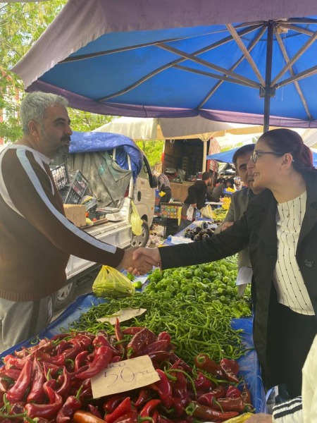 Tezgah fiyatlarının el yaktığı pazarda vatandaşların ve esnafın taleplerini dinleyen Yolcubal, kendisine yöneltilen partinin Aile Destekleri Sigortası çalışması hakkında bilgi verdi.