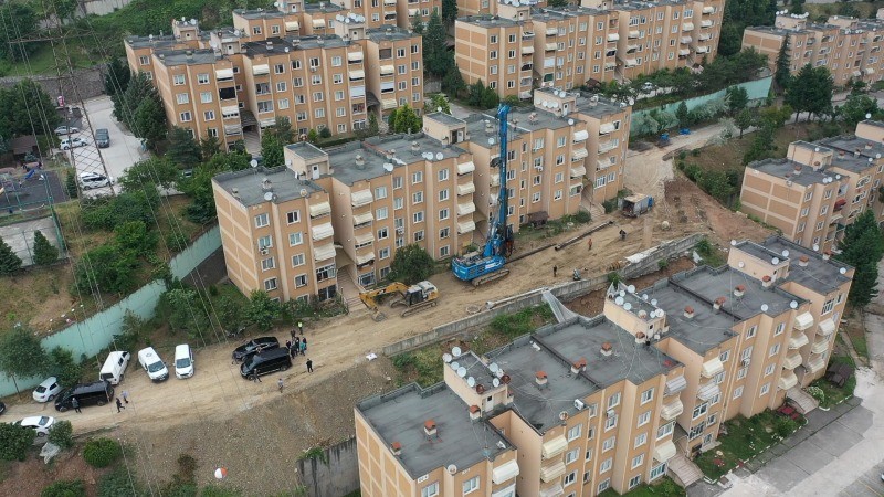 Yuvam Akarca Konutları’nda çöken istinat duvarının yeniden yapımı için kolları sıvayan Büyükşehir, işin yüzde 80’ini tamamladı