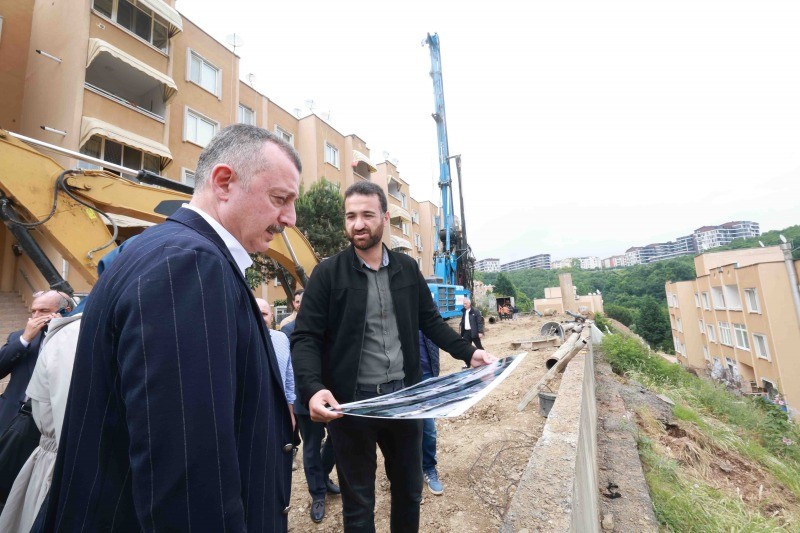 Yuvam Akarca Konutları’nda 14 Nisan’da yıkılan istinat duvarının yeniden yapımı sürüyor. Kocaeli Büyükşehir Belediyesi, mağduriyetin kısa sürede çözülmesi için yoğun çaba harcıyor. Bölgede inceleme yapan Kocaeli Büyükşehir Belediye Başkanı Tahir Büyükakın, ekiplerin sorunun çözülmesi için büyük bir özveriyle çalıştıklarını söyledi.