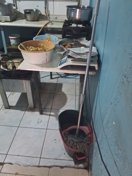 Fast food ürünleri yapımında kullanılan malzemelerin görüntüsü, işyeri sahibinin hijyen kurallarına uymaması nedeniyle gerekli işlemler yapıldı. Zabıta Ekipleri vatandaşların sağlığı ile oynanmasına asla müsaade etmeyeceklerini, bu konuda çalışmalarını aralıksız sürdürdüklerini belirtti.